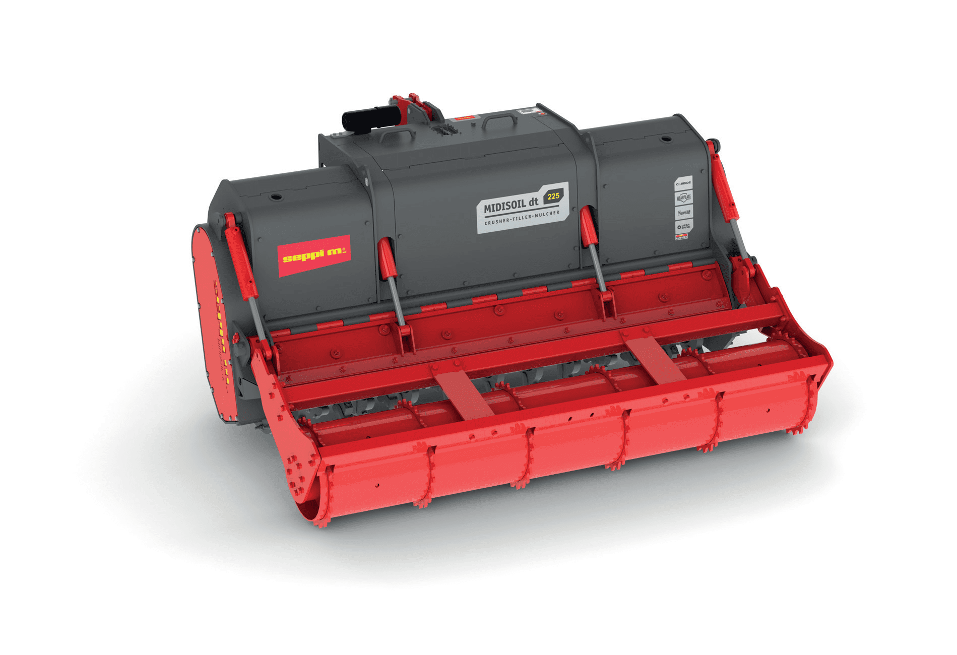 SEPPI машина MIDISOIL dt — это универсальная фреза-ротоватор, которая навешивается на тракторы мощностью от 150 до 170 л.с. SEPPI MIDISOIL dt способна дробить камни, фрезеровать грунт, стабилизировать почву, измельчать пни и корни.